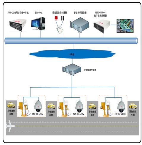 SINONET®ARDS-V1.0机场跑道外来物检测解决方案是一种被认为超过国际标准规范中的每一项指标的、最高要求的自动化机场跑道异物检测解决方案。该解决方案充分利用了独特的光学和雷达传感器混合技术,采用先进的图像处理软件和近距离检测技术,具备精湛的检测性能。系统的前端主要采用公司自主研发的FIAMM?FNC-C3-sd18w高清网络快球,该产品采用公司特有的、全球领先的ULLSTM超微光感知TM、3D数字降噪、3A成像控制等核心技术,配以77GHZ毫米波雷达,安装在多个道面监测单元的不同位置的跑道边灯上。每个检测单元都对跑道中线附近的区域进行快速扫描,发现异物后,可以立即向机场管理人员发出报警信息,告知异物的准确位置以及发现时间。而后,设备会拉近镜头,提供跑到异物的视频图像,同时传感器会锁定其物的位置,以帮助机场管理人员将异物取走。在夜间,还可使用激光指示器协助将异物取走。该解决方案可在30秒内完成对整条跑道的扫描,同时采用公司特有的、国际领先的智能识别算法,对探测结果进行智能识别分析与视频确认,从而使虚警率大大降低。公司自主研发的上述全系列产品均通过了相关的软件著作权认证、军用安全认证及国家公安部GB/T28181-2011标准测试。