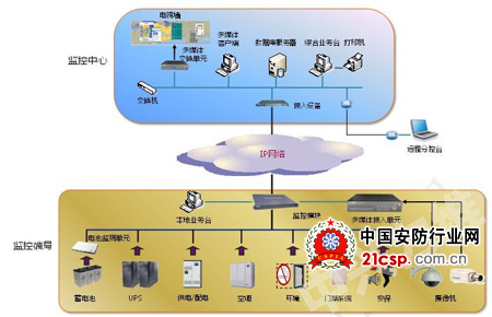 监控中心包括数据库服务器、操作终端、交换机等,对监控端局上报的动力、环境、图像等设备的各种信息进行智能分析处理,对于实时告警可通过短、彩信、电话、邮件等方式及时通知用户。