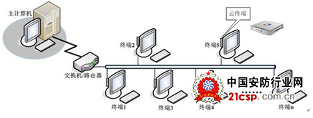 云终端使用WinCE嵌入式系统,通过TCP/IP网络协议连接云服务器,可得到独立的用户界面,银行柜台根据限定的应用完成日常作业;