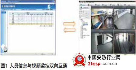 通过与狱政系统的数据接口进行对接,系统可以获取罪犯信息,在值班中心可以随时通过监控画面关联对应人员信息,比如浏览某个监舍,该监舍人员信息可自动关联显示,同样在浏览人员信息列表也可自动关联该人员的监控画面,比如点击某些重点罪犯名字可自动弹出当前该罪犯所处位置的监控画面。在实现上因为人员信息数据、视频监控数据均有独立的系统维护,只是在新的安防业务平台进行一些双向关联,同时参考罪犯作息以及目标跟踪系统即可实现位置信息获取,如图1所示。