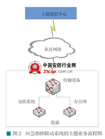 监狱级网络平台建设应能安全、顺畅、稳定地运行监狱、监区的各类信息管理系统,同时能承载语音、视频会议业务,并能够实时准确地交换传递数字化安防系统的各种监控、报警信息,并具有与省监狱管理局联网的功能。监狱广域网络连接如(图2)所示。