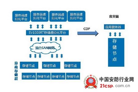 存储虚拟化平台采用赛思信安的SR1000VT虚拟平台,其中存储虚拟化管理服务器硬件平台热备高可用方式进行部署,支持多节点集群,多路径 I/O 切换;支持集群HA架构,8台以上集群扩展。每台服务器配置达到如下要求:2*E52609 4核2.4GHZ主频处理器;64GB高速缓存;标配2*1Gb IP接口和4*8Gb FC接口,可扩展到10个IP或20个FC接口。2*300GB SAS系统磁盘。