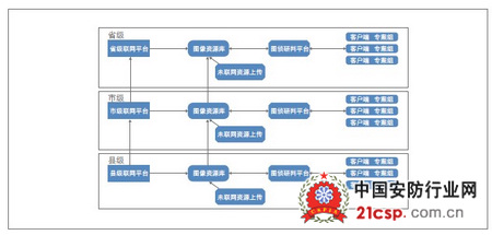 图像侦查研判系统采用三级建设模式,在省、市、县分别部署图像侦查研判系统。图像侦查研判系统依托图像联网平台、图像资源库获取相应的联网资源。案件相关信息在正式发布后,可由上往下的逐级调阅。各专案组分别设定相应的权限,可查看该专案组中所有上传至图像侦查研判系统中的各项资源与相关记录,同时可对已发布的案件进行相关的串并案分析。