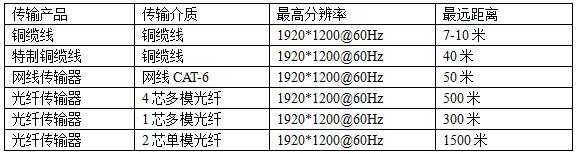 注:由于传输介质质量差异或外界环境影响,实际传输距离和效果略有差异。
