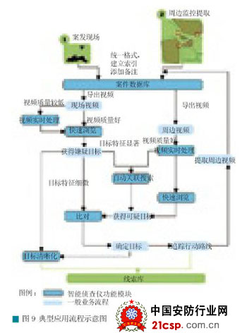 在对不同案件操作时,涉及到的流程步骤不可能完全相同,甚至可能是完全不同的。本文针对最常见的情况给出了典型的应用流程,如(图9),该流程从案件初期的视频提取一直到后期的案件分析。从中我们可以看到智能分析在整个业务中的重要作用。