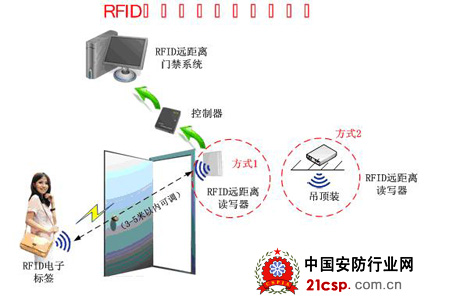 RFID远距离门禁考勤系统通过在通道处安装的RFID远距离读写设备,利用无线射频信号检测RFID卡,当该卡靠近读写器时,读写器能准确地对其识别,并将其数据发送给主控器和PC机,通过应用程序连接后台数据库实现对该卡的权限管理。若该卡已进行注册,则通过验证并通知控制器开门,并记录卡号和开门时间,反之则禁止通行并告知持卡人离开。在系统管理员授予权限的情况下,用户均可以查询、统计、打印管理系统的所有相关记录。
