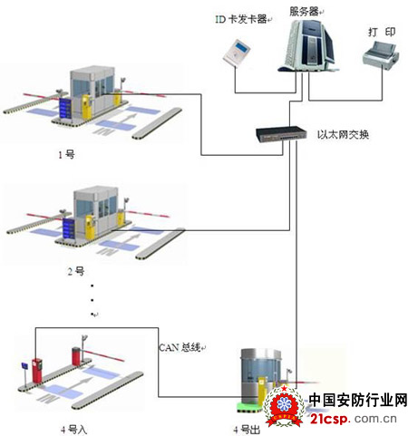 停车场系统主要由管理中心、入口及出口设备三部分构成,按功能划分为四大子系统,即进场子系统、出场子系统、和中心管理子系统。