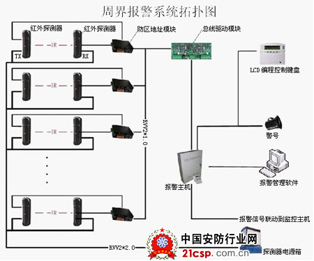 对于围墙长度比较长的,采用12光束红外光栅报警器,其余围墙和转角处用4光束红外对射报警器,管理中心处安装报警管理中心及LED电子区域图,触发报警后LED区域图上的LED灯频闪报警,管理中心人员通过对讲系统直接联系报警位置所在人员或附近人员赶赴现场,减少财产损失和减少人员由其他位置赶赴报警区域所用的时间。