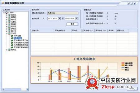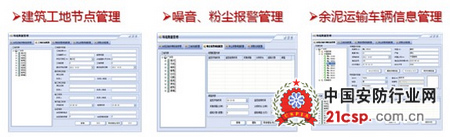 环境监测系统:环境检测主要针对建筑工地的噪音、粉尘两项重要的指标,通过市局监管人员和工地现场值班人员监督和智能设备探测等一系列环境保护工作系统有机整合起来。