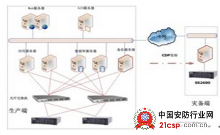 同时,为保证关键业务不中断性,需要24x7的保护,采用赛思信安先进的CDP及备份系统,构建一套先进的远程容灾、集中存储备份整合方案,下图为典型组网拓扑结构图: