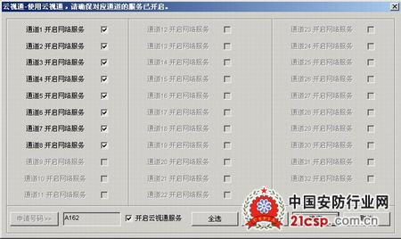 如果您的网络状况很不理想,此时可能出现某一路或多路的通道无法分配到相应的云视通号,那么您可以重新点击"申请号码"按钮重新申请相应号码。