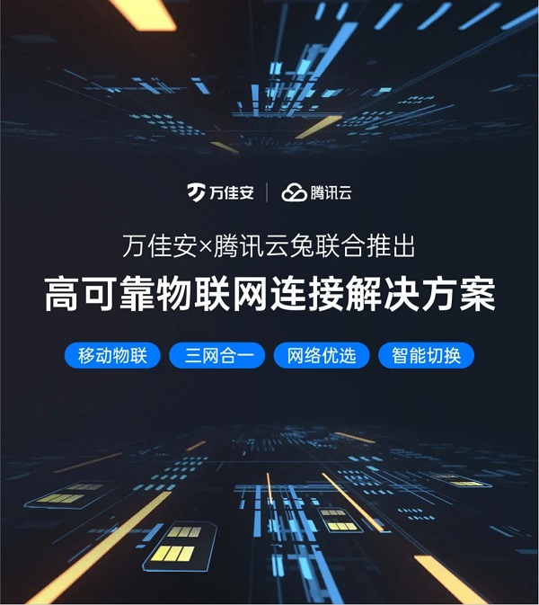 近日,万佳安与腾讯云兔持续深化战略合作,宣布又一合作成果落地。双方联合发布高可靠物联网连接解决方案,为物联网企业用户提供高可靠无线网络连接服务。方案结合双方优势能力,中国移动、中国电信、中国联通三网合一,这是目前国内首批官方认证、合规商用的物联网连接产品。