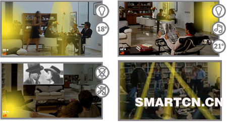 高级条件控制:通过MH200控制器,可对任何一个灯光回路或智能家居设备的动作设定多个条件,可储存300条带多个条件命令,如设定晚上24:00-06:00时间段,当卧室卫生间灯未关闭时,卧室灯光自动启动。