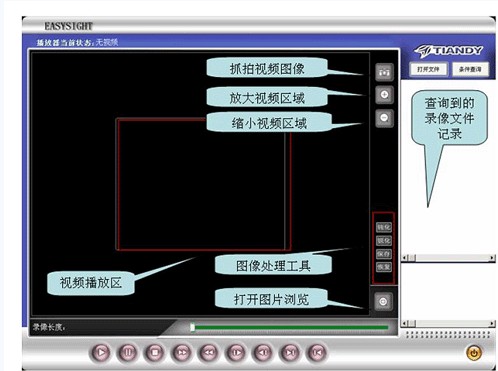 5)视频点播模块:用户可以通过IE浏览器直接进入视频点播模块。系统为用户提供了本地和远程的录像文件查询方式。在录像回放过程中还可以对画面进行处理、抓拍、回放照片等操作。抓拍后的照片可以实时打印。