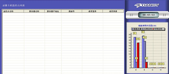 3)集中录像主机:在一个系统中可设置多台录像主机,每台录像主机可以集中录像200路视频点。系统可以实时显示各录像通道的状态,以及各磁盘占用情况,当磁盘空间不足时可以自动发出报警,或采取相应策略。