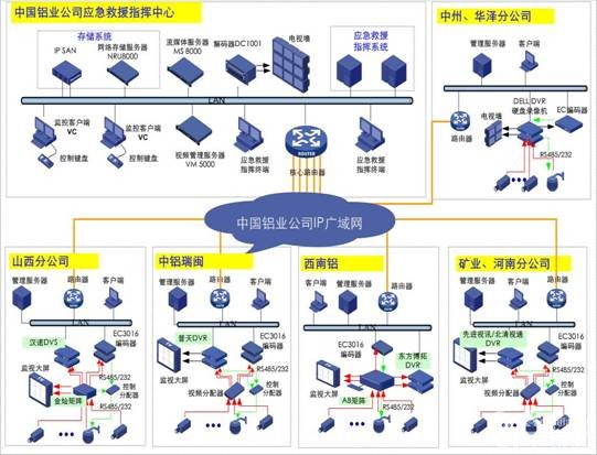 为了提高应对重大事故的能力,统一生产监控的技术标准,改变原有陈旧的技术实现方式,实现总公司和下属13家成员企业的生产视频监控联网要求,中国铝业依托现代化科学技术手段建立了跨广域IP视频监控整体解决方案。