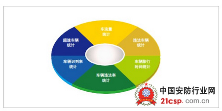 系统拥有全面、综合的统计功能,可按照用户需要,针对监测区域、单一路口或某车道统计各类信息,并生成统计图,以报表形式输出。统计类型包括:车流量统计、违法车辆统计、超速车辆统计、车辆识别率统计、车辆违法率统计、车辆旅行时间统计等。