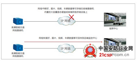系统支持抓拍图片、视频数据、车辆信息等在前端设备进行存储,与中心形成数据缓存。可选择配备网络硬盘或者在一体机中配置固态硬盘,将识别结果数据以及录像视频数据存储,以便保证数据的完整性和历史数据可回查性。当网络出现异常时,抓拍图片、视频数据、车辆信息可存储于系统前端设备中,等网络通畅后再传输给指挥中心,这样可确保实时数据不会丢失。