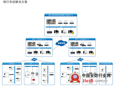 多年来,银行为保障其下属营业网点安全,投入了大量的人力、物力来加强对网点的警戒,其目的就是要确保各营业网点的绝对安全,同时依靠技术和物理防范来减少人员劳动强度及可能发生的不安全的人为因素。为此银行支行及其营业网点都建设了大大小小的监控报警系统。但由于建设之初技术水平和网络建设的限制等原因,各地的监控报警系统一直没有形成一套紧密结合银行安防管理需求和技术发展变化的技术规范和防范体系,技术规范和设备种类不一,管理困难,无法充分利用现有资源,造成了系统资源的浪费,加大了管理的成本,目前的技术防范体系已不能适应银行安全管理和技术发展变化的要求。因此银行拟定在全辖区营业网点、ATM柜员机、银行金库范围内进行系统的设备配置计划与技术设计,实现对各个视频监控系统、报警系统、金库门禁系统等的全面联网管理,并达到总行关于金库集中异地守库的要求。