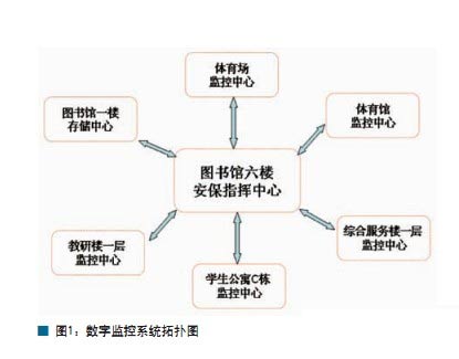 此次设计的系统是一个基于网络的数字监控系统,它建立在内部专网上,经济、安全、可靠、易于维护。该系统共有6个视频监控中心,大运期间在图书馆六层设置安保指挥中心,图像信息通过光纤传送到指挥中心进行控制监看。系统总拓扑图如图1。