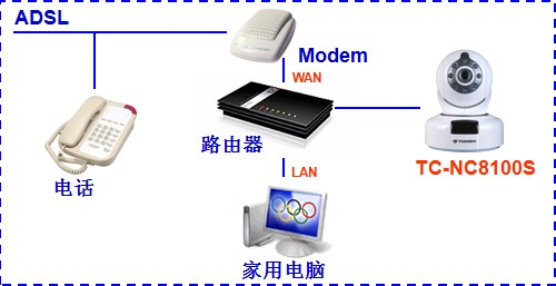 摄像机支持有线和无线接入两种方式。有线接入示意图如下所示:
